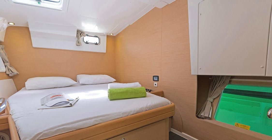 L'imbarcazione è dotata di 4 cabine matrimoniali e può ospitare fino ad 8 passeggeri.